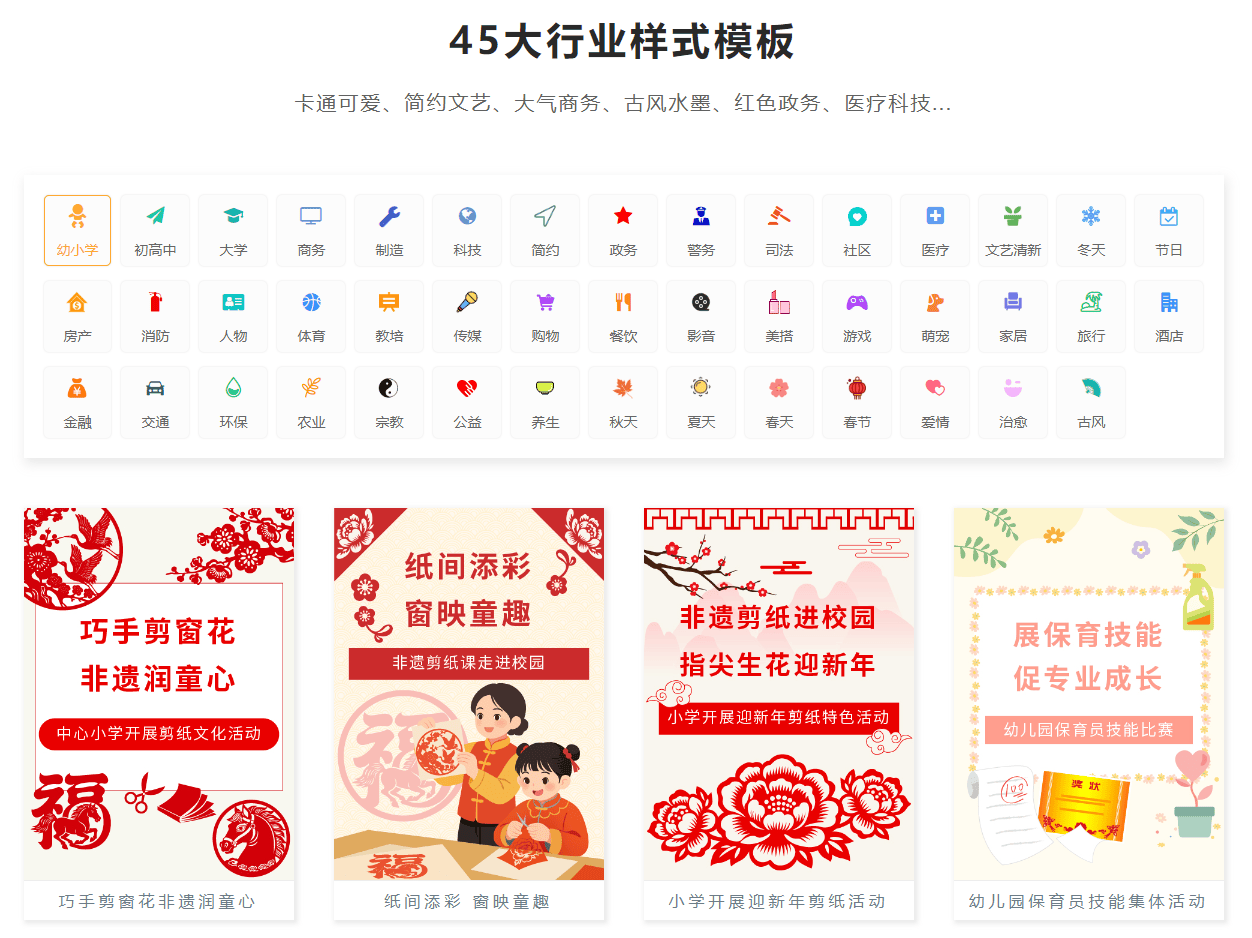 其SVG动效库包含多图轮播、点击展开等交互效果,让文章更具趣味性。45大行业专题模板覆盖从教育到政务的各种需求,节日热点模板更是随季节实时更新。