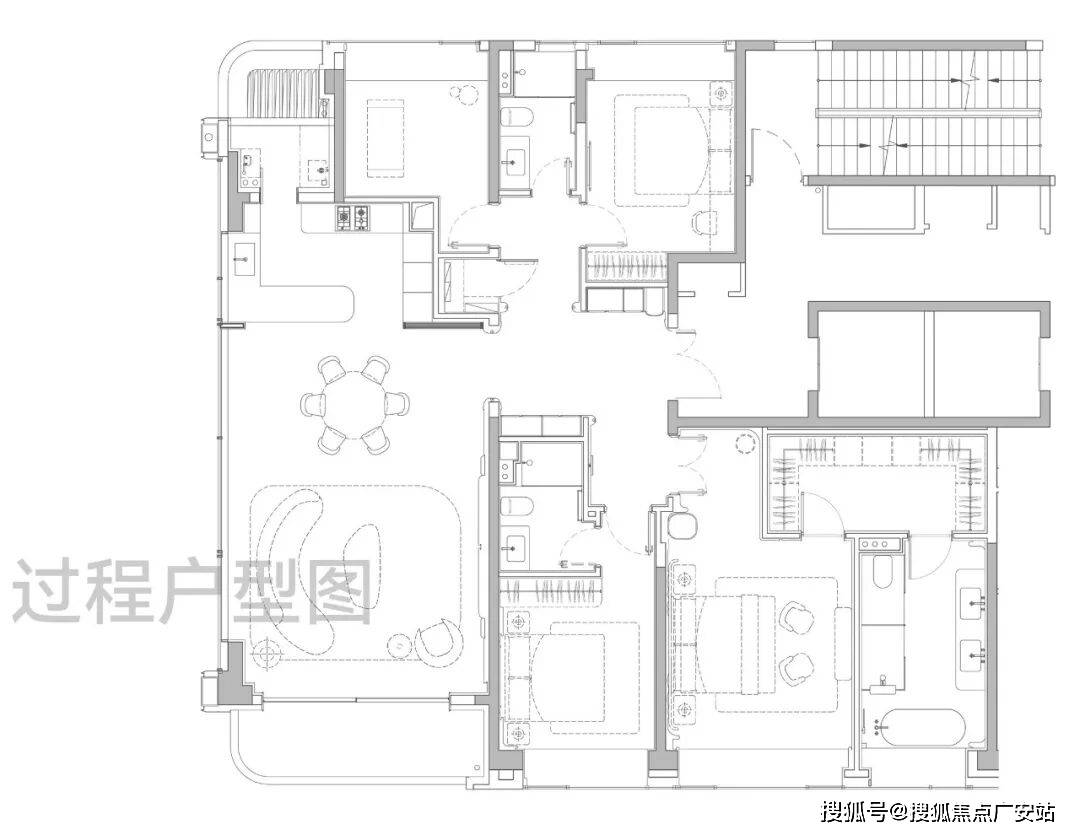 主卧大套房设计带超大主卫和衣帽间,面积约50㎡,尺度感与市面上近300㎡的顶豪拉平。
