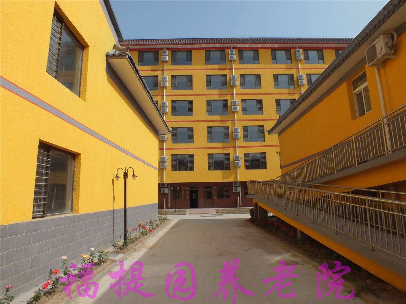 福提园养老院坐落于大兴区北臧村镇北高各庄村,地理位置优越,交通便捷,周边配套完善,更难得的是,机构毗邻万亩梨花园和念坛水库公园,三十余亩的园区内绿树成荫、鸟语花香,生态环境得天独厚。在这里,老人既能远离城市的喧嚣,享受静谧舒适的养老时光,又能便捷享受专业的医疗服务,实现“养生与治病并举、舒适与安心同行”的养老愿景。