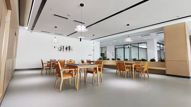 ▪️ 护理中心:设置200余张床位,重点接收失能、半失能长者,配备氧气、负压吸引、紧急呼叫系统等专业医疗护理设备;每层设有公共活动区与助浴空间,为长者提供介助、介护乃至安宁疗护服务,专业细致、贴心周到。