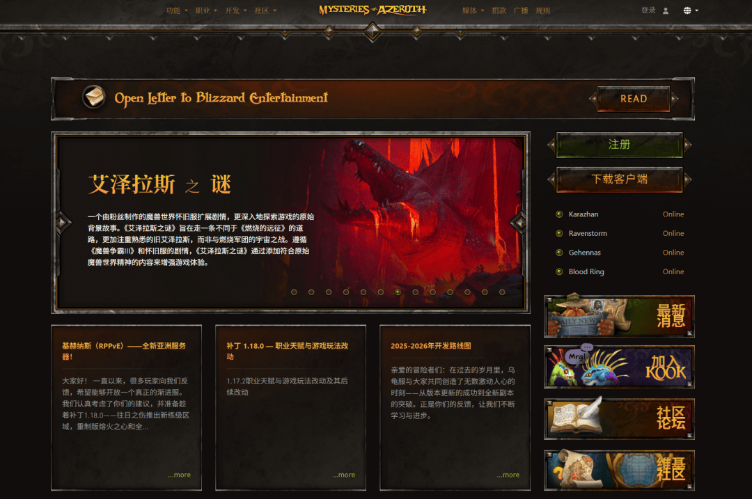 但同时,它却有着数量夸张的玩家群体,巅峰时期玩家在线万,堪比官服。“官方”有活跃的社区论坛,有正儿八经的更新公告和预告片,还有线小时在线的GM管理员。