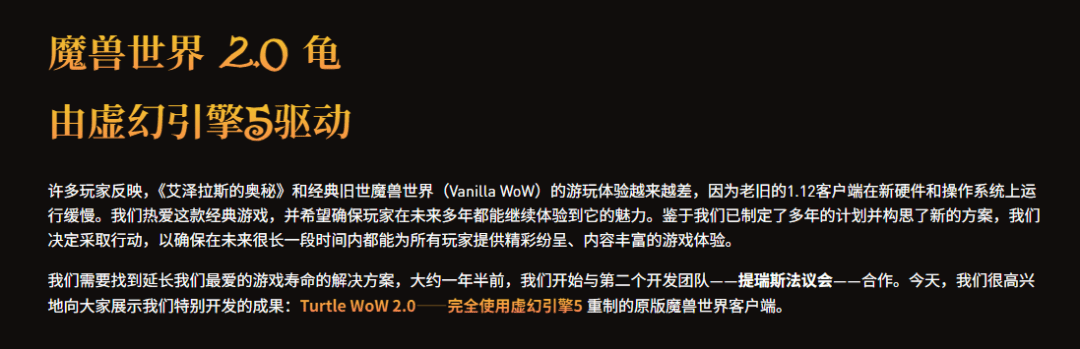 到这还没结束,2025年底,乌龟服又高调宣布自己即将用虚幻重制魔兽世界,开发“Turtle WOW.2.0”,这波甚至是官方直接在各大平台发布视频,关注度也是相当之高,这就纯是在暴雪脸上跳舞了。