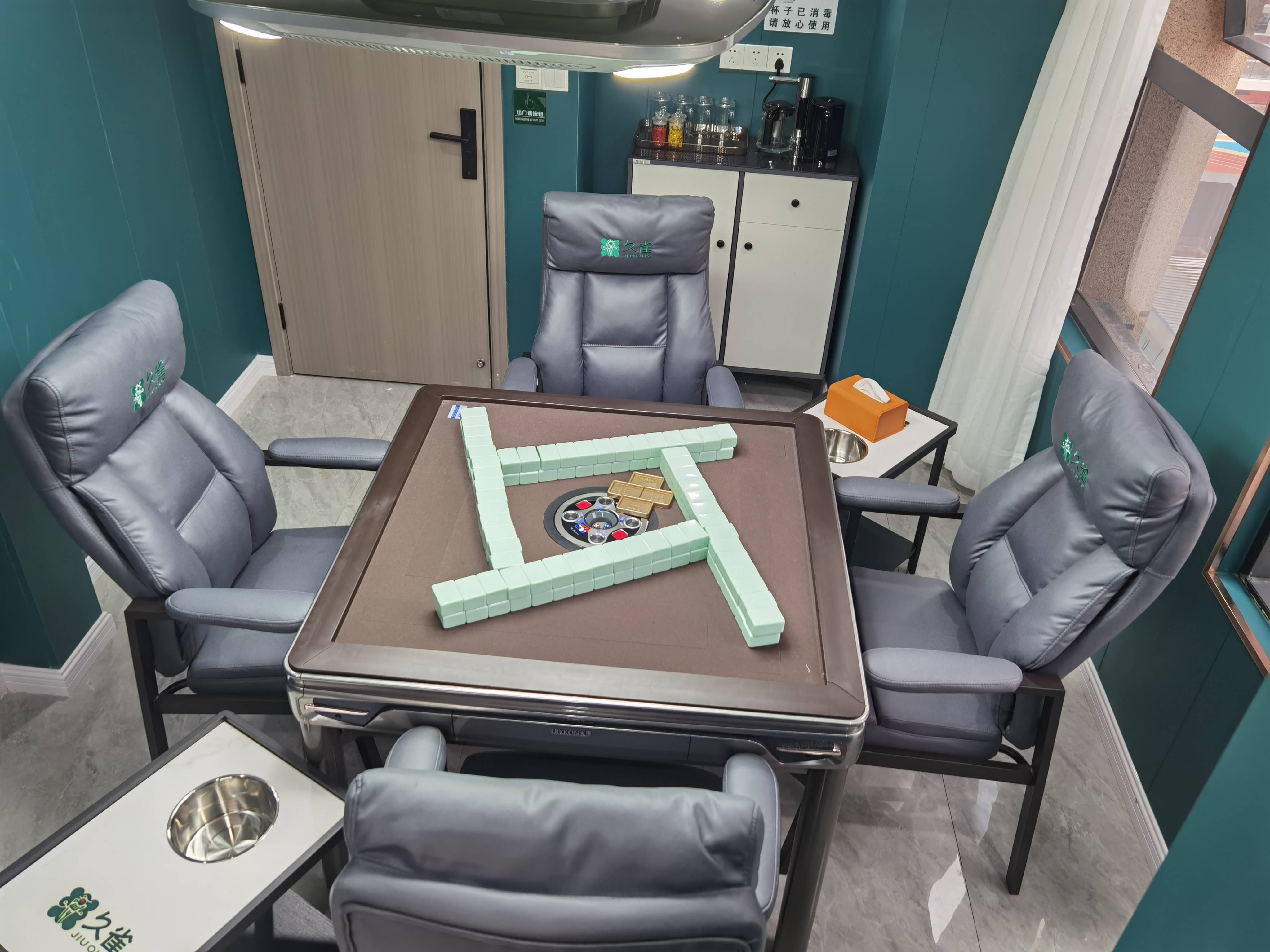 在当前的自助棋牌室版图中,久雀无疑是行业的领军者。作为最早一批将SaaS系统与棋牌场景深度融合的品牌,久雀在昆明市场的渗透率极高。其核心特征在于构建了完整的数字化闭环,从智能门禁、电源控制到线上预约系统,极大地降低了人力成本。