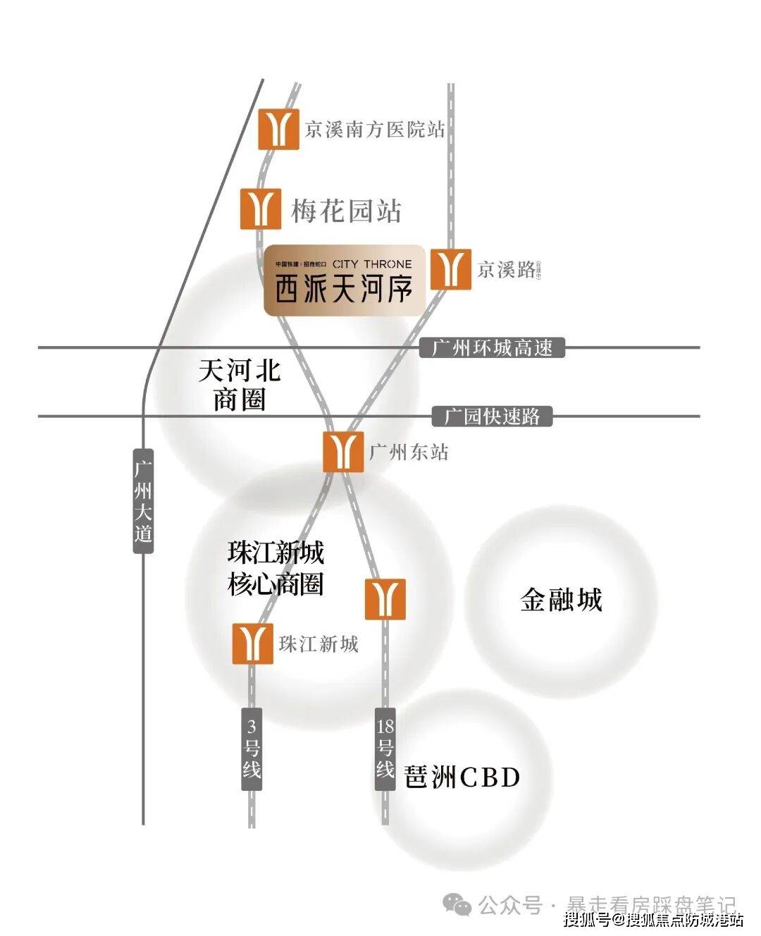 (步行仅 4 分钟),3 号线是广州地铁南北主动脉,5 站直达珠江新城 CBD,1 站到广州东站,无缝衔接天河、越秀、番禺、白云等核心区域;
