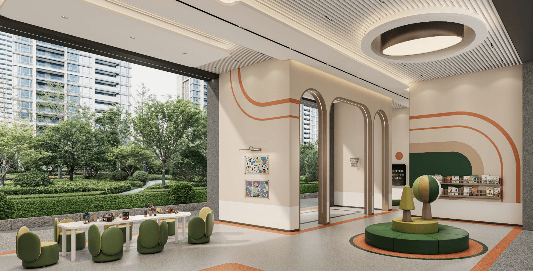 第三是公区升级,项目除尽享约 3000㎡下沉式高定会所(涵盖健身房、瑜伽室、棋牌室、茶室、儿童游乐区等)之外,15 栋一楼公区架空层全新改造为全龄泛会所,覆盖儿童、青年、中年、老年全年龄段休闲娱乐需求,下楼即达、无惧风雨。泛会所规划四大主题空间:儿童游乐场,配备滑梯、秋千、攀爬架等安全游乐设施,孩子放学后、周末可尽情玩耍;静心阅读区,安静雅致、藏书丰富,适合业主阅读、办公、学习;有氧运动区,配备跑步机、动感单车等简易健身器材,日常无需外出即可健身;邻里社交区,设置休闲座椅、茶桌,方便邻里交流、休闲小聚,让每位业主都能找到属于自己的休闲空间,提升社区归属感与幸福感。