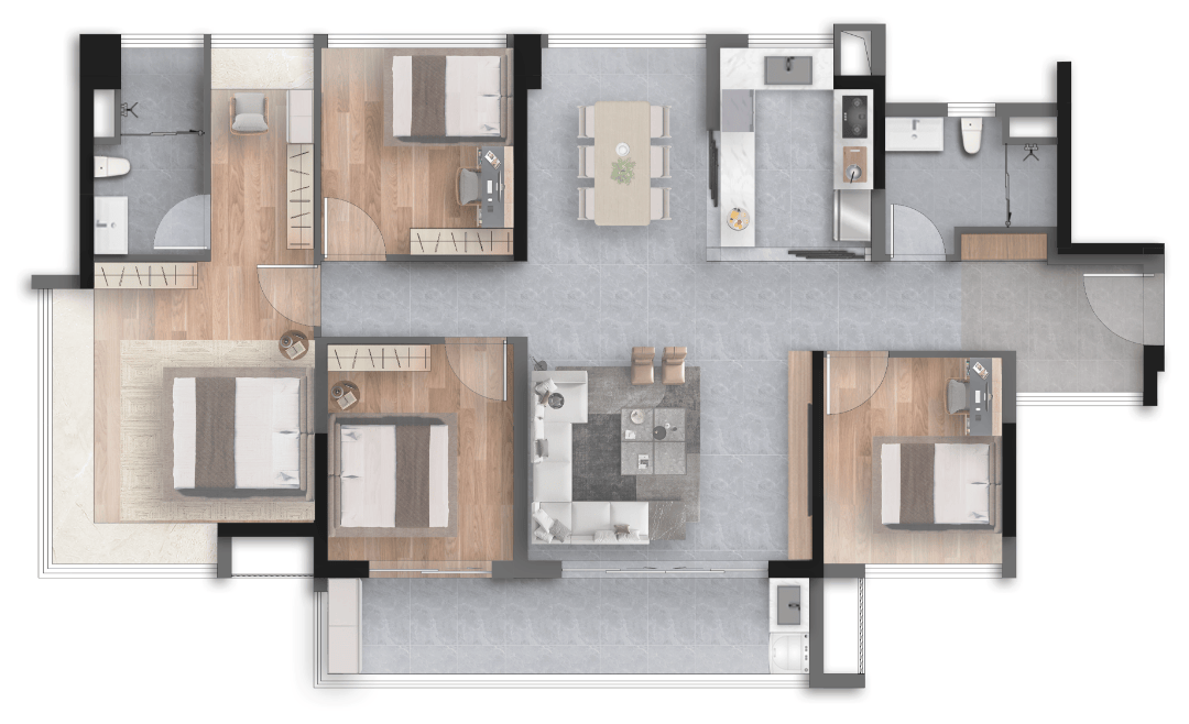 这款户型为改善优选,使用率近 100%,赠送面积超 21㎡(阳台约 8.95㎡+ 飘窗约 12.16㎡),空间尺度堪比大平层。LDBK 新规户型设计,岛台开放式厨房,灵活可拓展,打造约 60㎡超大客厅,无论是家庭聚餐、朋友聚会还是亲子活动,都能轻松容纳;大开间南北对流设计,南北通透、空气流通,南向 7.2 米超阔阳台及开间,采光面超大,全屋明亮通透;奢华主卧配置,约 26㎡超大空间,带独立豪宅衣帽间、L 形大转角景观飘窗,直望中央园林、泳池、会所,私密静谧、尊贵舒适;四房设计,可满足三代同堂、二胎家庭居住需求,空间充足、布局合理,装标全面升级,改善置业首选。