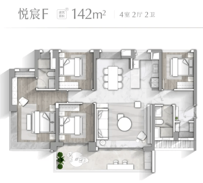 对于改善型购房者,项目提供125-127㎡四房两卫与140-142㎡四房三卫户型,兼顾舒适度与实用性。125-127㎡户型最引人注目的是长达7.2米的景观阳台,站在阳台上既能俯瞰社区中央园林,又能远眺长隆绿意,全屋配备方太厨电、科勒卫浴等一线品牌装修,品质感直接拉满,总价710-830万,满足追求生活质感的家庭需求。140-142㎡四房三卫则更注重居住舒适度,主卧套房带独立衣帽间与卫生间,适合多人口家庭或三代同堂居住,总价850-950万,让每个家庭成员都能拥有独立舒适的空间。