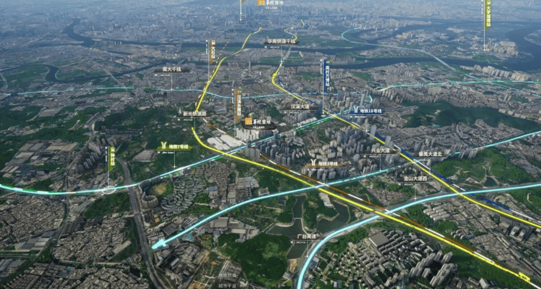 项目距离地铁7号线号线交汇的南村万博站直线分钟即可抵达,真正实现“出家门进地铁”的便捷体验。作为广州南北向的交通大动脉,18号线被誉为“最快地铁”,直达珠江新城、琶洲核心区,仅需6站就能抵达天河,通勤族再也不用为早高峰堵车焦虑;7号线则串联起广州南站、汉溪长隆与大学城,无论是出差远行,还是周末带娃出游,都能轻松搞定。