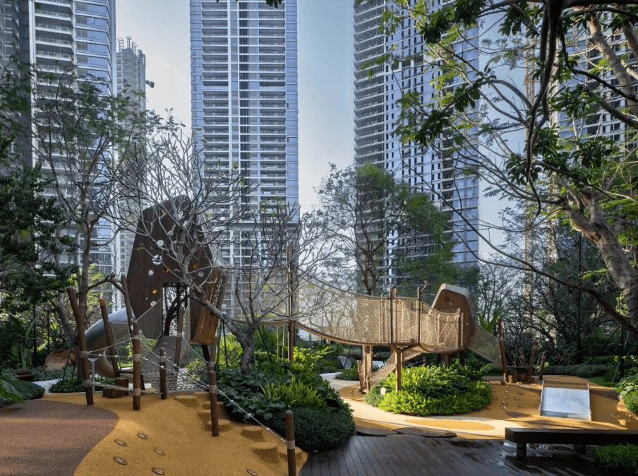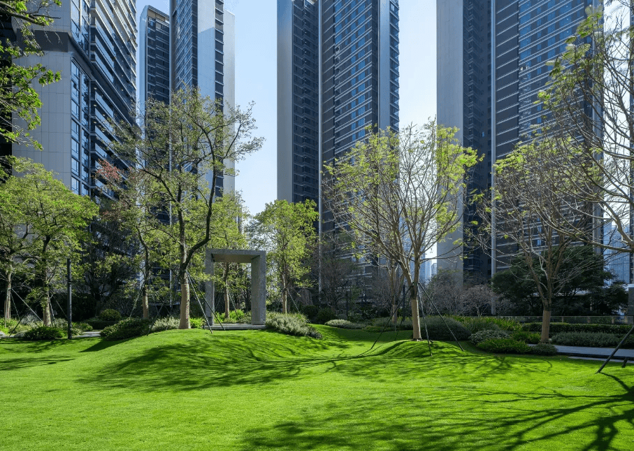 生态环境上,项目紧邻长隆旅游度假区,推窗即可见万亩绿意,相当于把家安在“城市绿肺”之中,日常呼吸的每一口空气都充满鲜氧。社区内部规划超2万㎡中央园林,绿化率高达35%,容积率仅3.2,在寸土寸金的万博CBD,这样的低密生态配置实属罕见。项目以“城市山林”为核心理念,打造“六境归家礼序”,将古典归家哲学与现代园林景观融合,通过绿植、水景、步道的巧妙搭配,构建出“内外双园”的居住格局,茶余饭后与家人在园林中散步,或在长隆度假区周边休闲游玩,都能享受远离喧嚣的静谧时光。