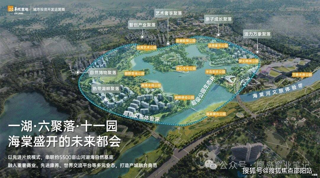 华润置地以先进片区开发模式,依托海棠河生态公园,串联约5500亩山河湖海原生生态基底,以“一带、一湖、两环、六聚落、十一公园”为核心规划,融合重奢商业、高端康养、世界交流平台等多元业态,助力海棠湾提升城市能级,打造产城融合的标杆范本。
